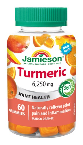 Kurkuma v želatinových pastilkách s lahodnou mangovou a pomerančovou příchutí podporuje přirozenou úlevu od bolesti kloubů vyvolané zánětem. Má antioxidační účinek, snižuje tvorbu žaludeční kyseliny a blokuje množení bakterií v žaludku (Helicobacter p.), snižuje hladinu cholesterolu. Bez soli (NaCl), lepku, laktózy, umělých barviv, umělých aromat a konzervačních látek.